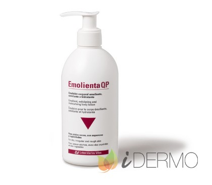 Emolienta QP es una emulsión corporal específicamente diseñada para pieles ásperas y rugosas con sequedad. Gracias a su formulación a base de ácido salicílico y ácido glicólico, aporta un efecto queratolítico-exfoliante que reduce las asperezas y alisa las rugosidades de la piel, reduciendo los estados descamativos, al mismo tiempo que consigue un intenso efecto hidratante. Constituye un tratamiento ideal para combatir los tapones córneos que obstruyen el orificio folicular, contribuyendo a restablecer el manto hidrolipídico, además de calmar la sensación de disconfort. Emolienta QP está especialmente formulada para su aplicación en zonas extensas del cuerpo (particularmente brazos, muslos y nalgas) por su fluidez y rápida absorción sin dejar residuos.