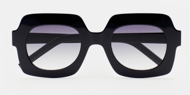 Gafas de sol de forma hexagonal oversized. Sutilmente llamativa. Frontal y varillas de acetato azul oscuro. Lente gris oscura degradada base 2 con 100% protección UV y tratamiento antirreflejante. Lente Categoría 2. Plaquetas de acetato incorporadas. Hecha a mano.
