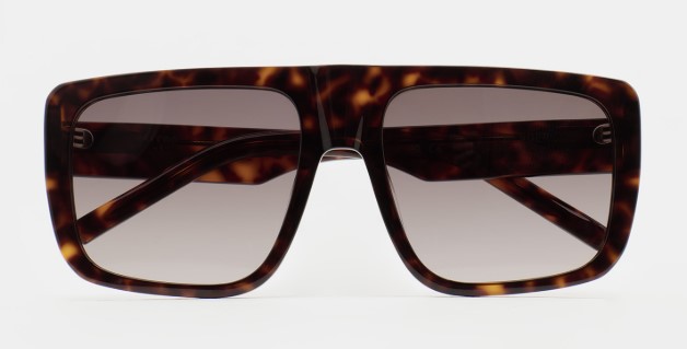 Gafas de sol de forma cuadrada oversized. Contemporánea y llamativa. Frontal y varillas de acetato havana marrón oscuro. Lente gris degradada base 2 con 100% protección UV y tratamiento antirreflejante. Lente Categoría 3. Plaquetas de acetato incorporadas. Hecha a mano.