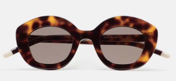 Gafa de sol KIDS de forma mariposa. Frontal y varillas de acetato havana marrón. Varillas con terminal beige translúcido. Lente gris base 2 con 100% protección UV y tratamiento antirreflejante. Lente categoría 3. Plaquetas de acetato incorporadas. Hecha a mano.
