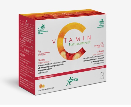 Vitamin C Naturcomplex es la respuesta de Aboca a las vitaminas de síntesis: es un complemento alimenticio natural y biodegradable al 100 % capaz de proporcionar la dosis diaria recomendada de Vitamina C, junto a otras sustancias presentes de forma natural en el extracto de Acerola, como flavonoides (entre los cuales quercetina y antocianinas). Es un producto indicado para adultos y niños a partir de 4 años de edad, gracias a su contenido de Vitamina C que contribuye al funcionamiento normal del sistema inmunitario, a disminuir el cansancio y la fatiga, a la protección de las células frente al daño oxidativo y al funcionamiento normal del sistema nervioso. Además, la Vitamina C contribuye a la formación normal del colágeno para el funcionamiento de los huesos, cartílagos, dientes, encías, piel. Además, mejora la absorción del hierro. Las características sobresalientes de Vitamin C Naturcomplex se pueden resumir fácilmente en 8 puntos: